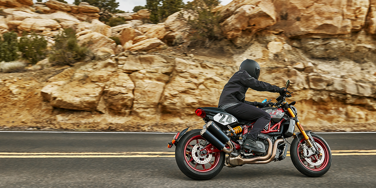 Czy to na biegu jałowym, czy przy przyspieszaniu, potężny silnik FTR podkreśla styl motocykla. Nie zapomnij podkręcić głośności!